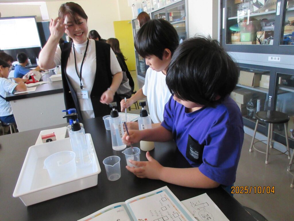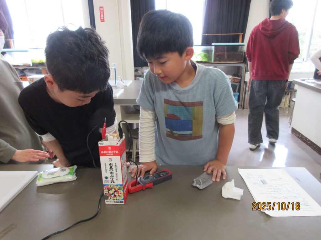 [報告]2025年 第5節 手作り化粧品&電気パン 2025年後期 2026.02.14 目次 手作り化粧品電気パン 手作り化粧品 今年もロート製薬㈱と㈱ヤマザワ薬品のお姉さん方から手作り化粧品の手ほどきを受けて、新商品の開発に挑戦しました。製品コンセプトシートの作成から始まり“商品の名前”,“誰に向けての商品”を考えて・・・、製品を作るってホンと大変なんだね! 電気パン 毎年やっている定番の電気パンです。いつも大人気です。2枚の金属板の間にパン生地を入れて電気を流すと、ふっくらしたパンができあがります。でも実際はパン生地がホットケーキミックスなので、パンというよりも蒸しパンに近いけどね!