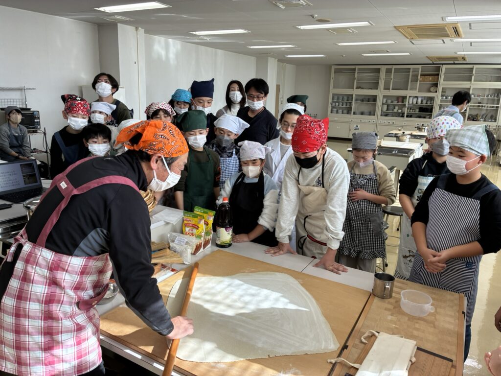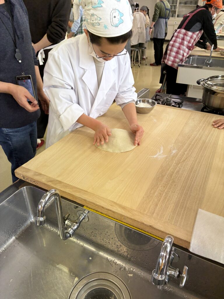 [報告]2025年 第7節 蕎麦の科学 2025年後期 2026.02.14 そば打ちを科学する! 今年度最後のケミラボは、初登場の『そば打ちを科学する!』です。二八(にはち)の蕎麦を作りました。大変ながらも、みんな立派な蕎麦を“打つ”ことができました。さて、お味の方は!